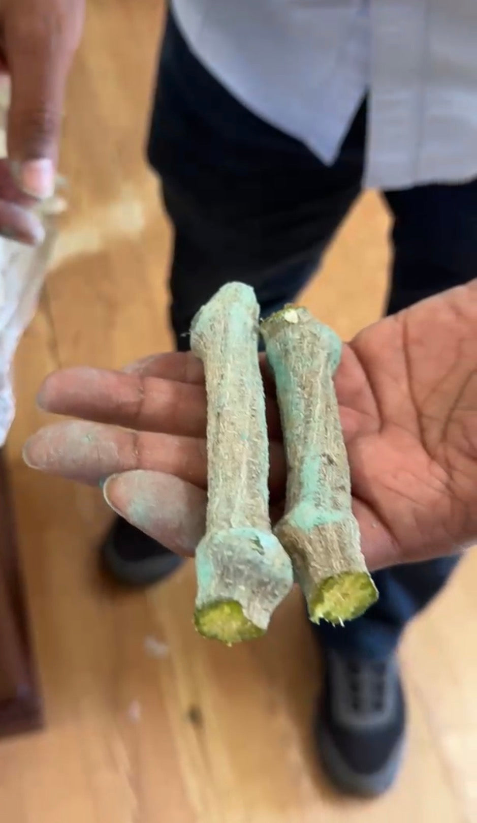 These are dusted with fungicide to ensure the cuttings are healthy. The green powder doesn’t need to be washed out for planting.